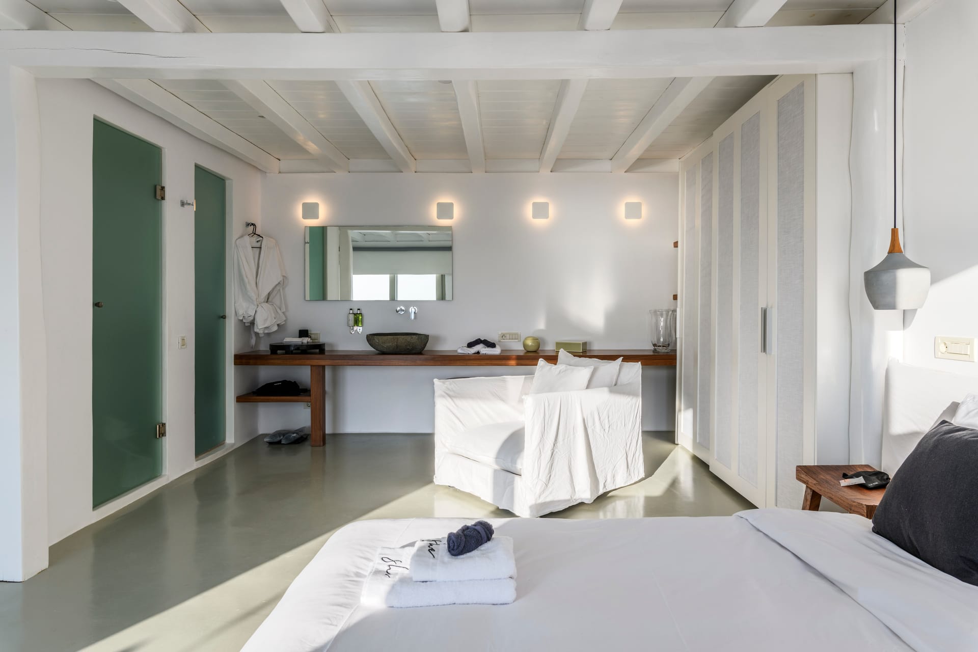 We proudly introduce She Mykonos Residences, a collection of eleven carefully curated properties that offer a sophisticated yet tranquil escape just steps away from the heart of Mykonos Town.
